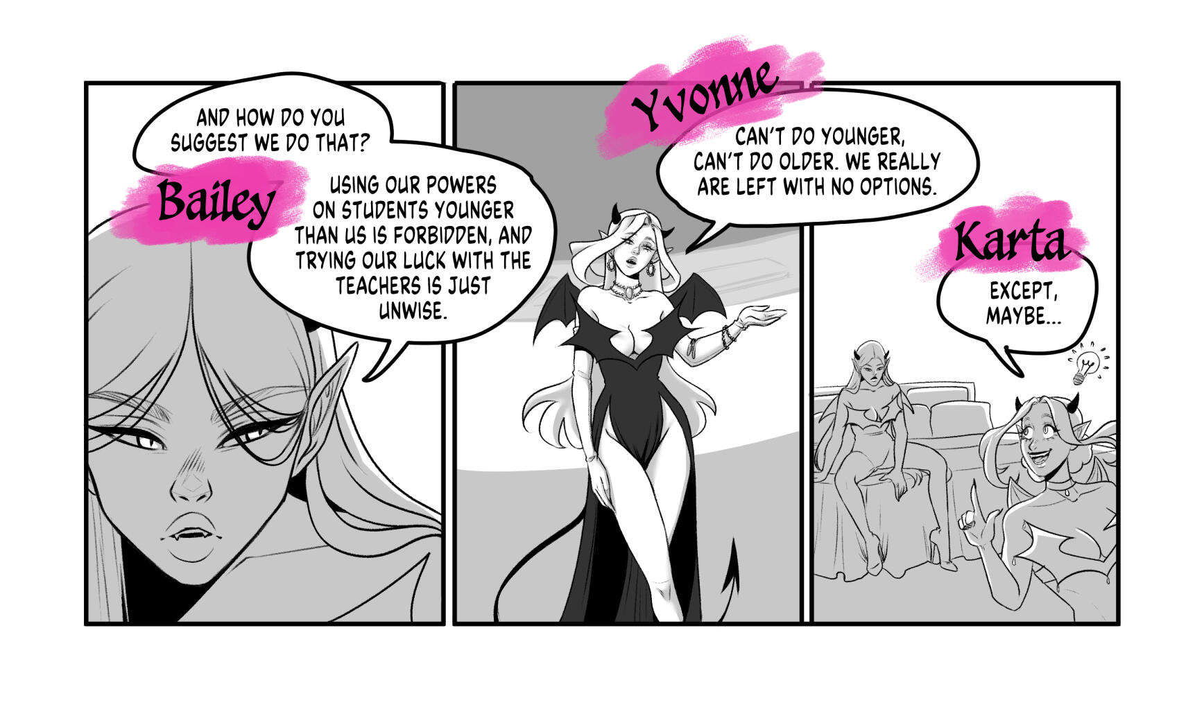 "Oh nooo, we can't pass our Succubus Exams™️ unless we all have an orgy?! WHATEVER SHALL WE DOOOO~~"Six succubi,